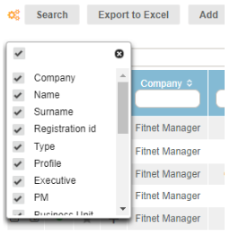 The exported Excel table will be the same as the table in Fitnet Manager (see selection of columns).