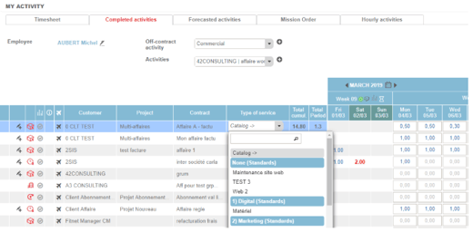 The invoiced activities entered in the timesheet (via the Completed Activities tab and the Timesheet tab) are always attached to an activity.