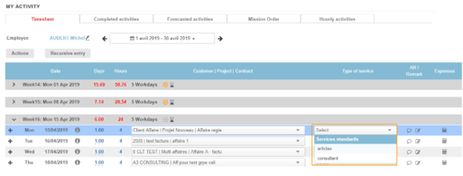 The choices of activities and types of services are dissociated. Employees are free to define, by activity, the types of services they work on.