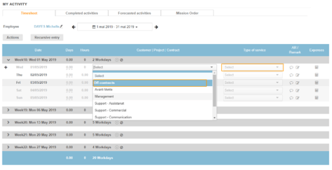 We can provide even more precision and for the same customer activity, enter times by type of service.