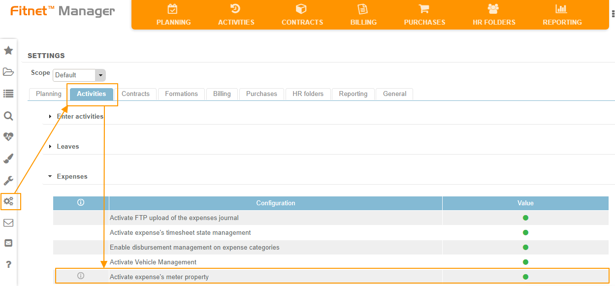 To gain access to sequential numbering for expenses, the setting must be activated in Settings > Activities > Expenses > Activate expense's meter property.