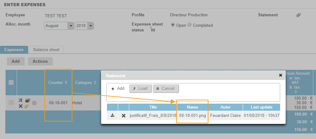 The sequential counter then makes it possible to identify and link expenses and supporting documentation. The number is generated automatically and cannot be changed. There is no way for duplicates to be created.