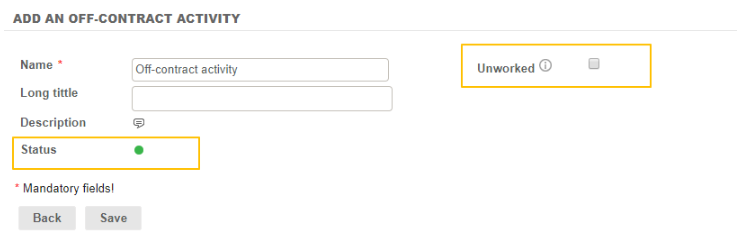 You can active or disactive a off-contract activity through Statut field. If it is disactive, you unable employees to input time on it : it is not displayed in agenda or timesheet.