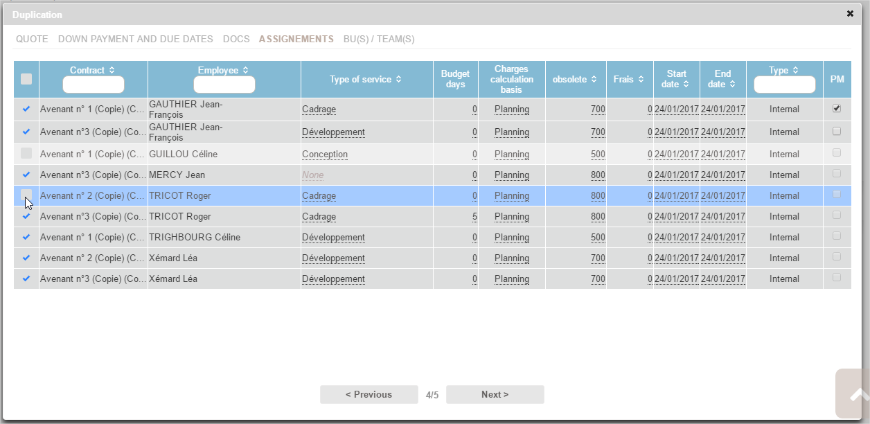 You can resume all or part of the employees assigned to the cloned cases. The system enables you to keep exactly the same or to change assignments (DR, dates, etc).