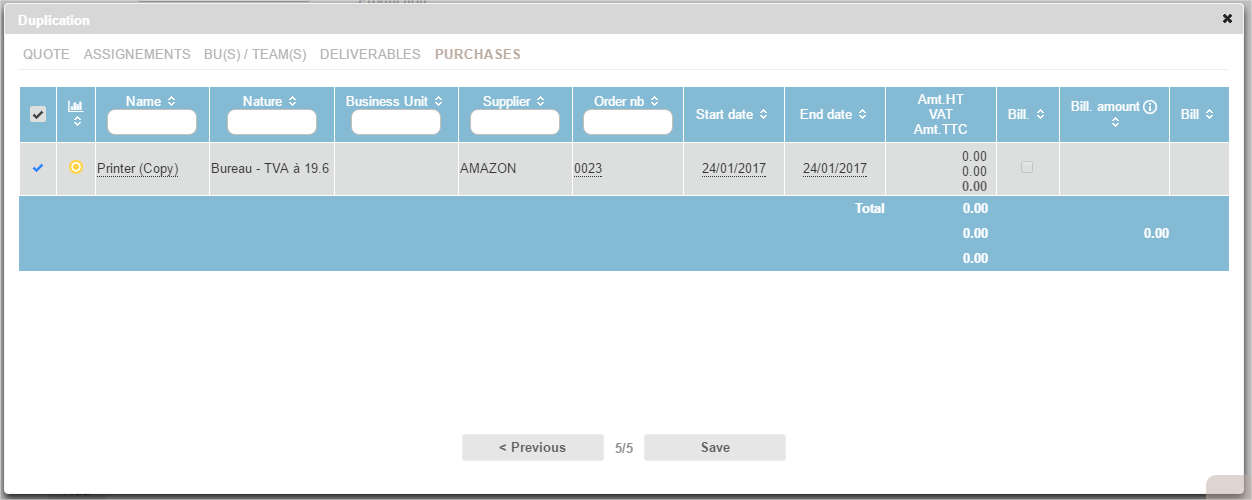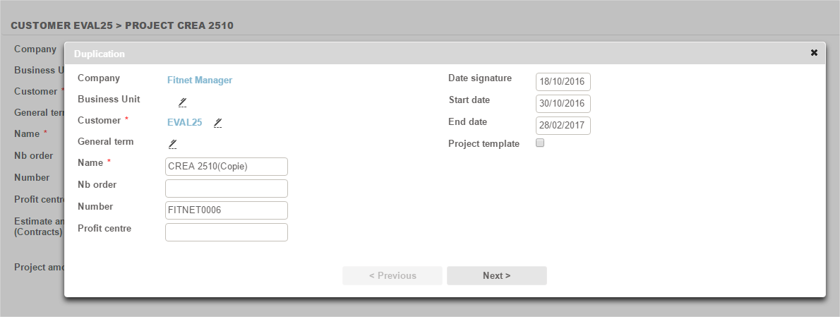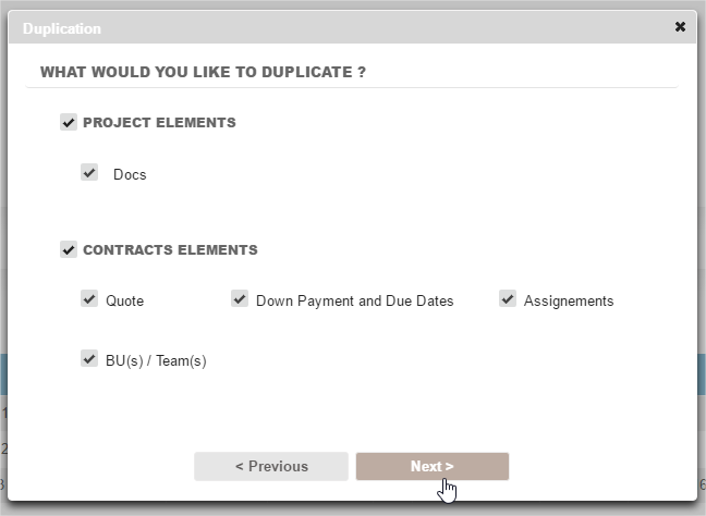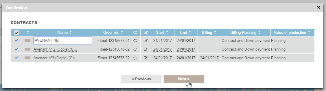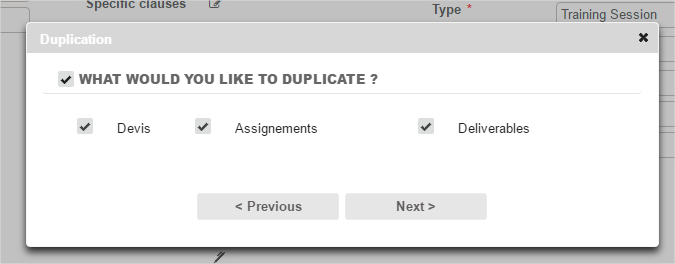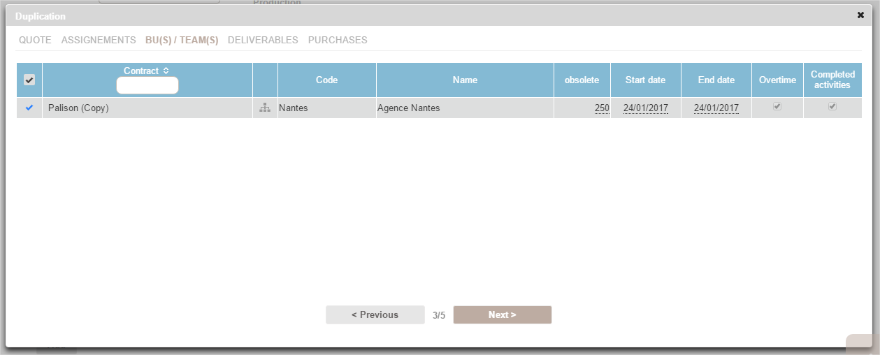 You can resume all or part of the cases related to the source project, keeping them unchanged or by directly editing the main components (names, dates).