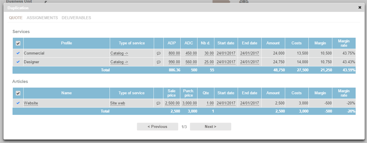 If a pricing grid is attached to the source case it is possible to duplicate it on the new case (overtime/standby management).