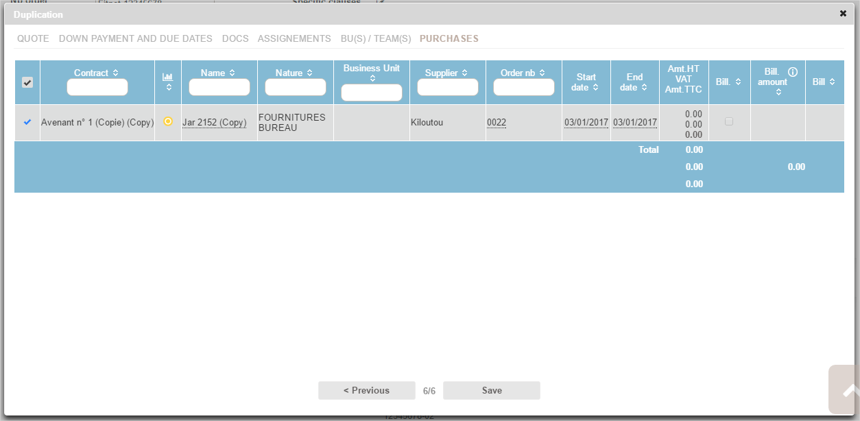 You can resume all or part of the scheduled due dates in the cloned cases. Changes in terms of amount, wording or dates are also available.