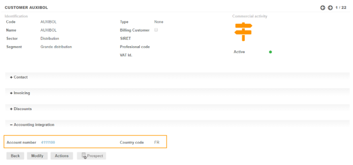 If the Accounting Integration function for invoices is activated then new properties are added to the Customer sheet: