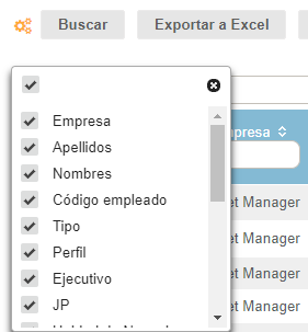 . Esta tabla se puede exportar a Excel. Desde esta página, se puede abrir la ficha de un empleado