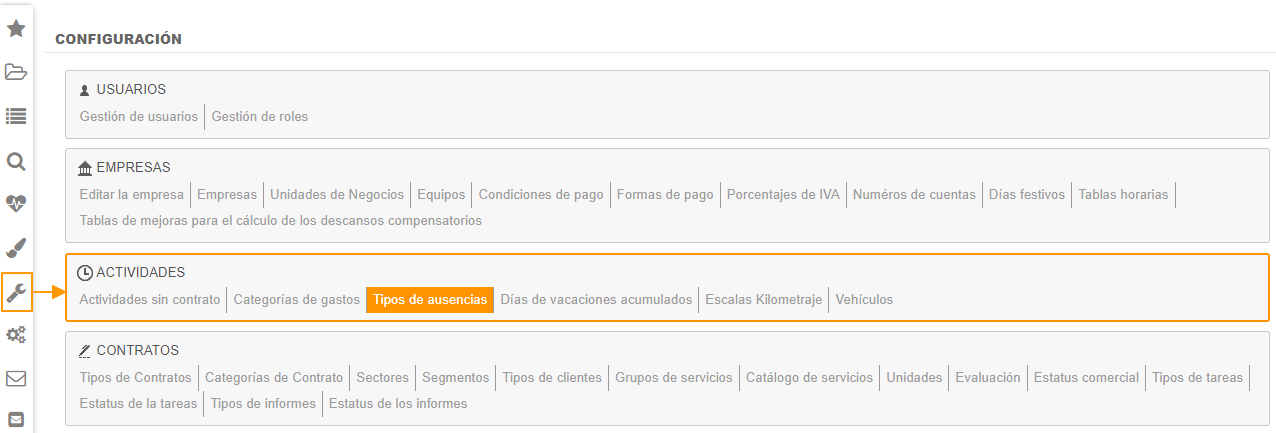 Configurar los tipos de ausencias