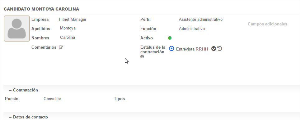 - Directamente desde la ficha del candidato, presionando en el icono al lado de "Estatus de la contratación"