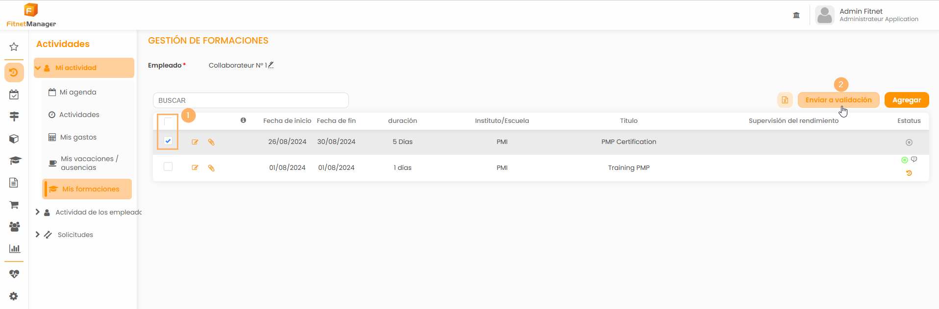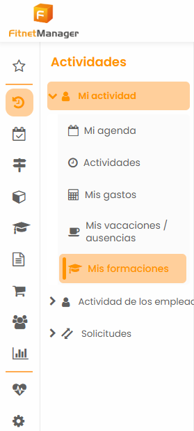 Para enviar una solicitud de formación, el empleado debe dirigirse a su área de vacaciones: Actividades> Formaciones.