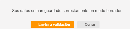 2/ Enviar directamente desde la pop up de creación / modificación haciendo clic en el botón "Guardar" y luego "Enviar a validación"