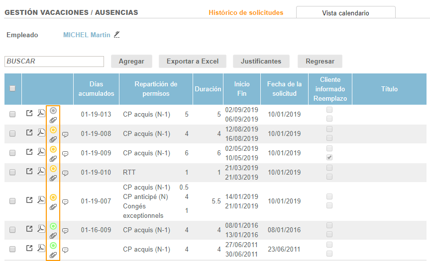 Los estatutos de las solicitudes se pueden consultar en la pestaña "Histórico de solicitudes":