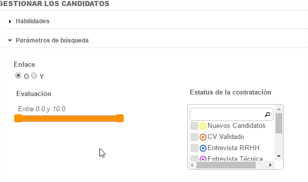 Para usarlos, debemos abrir la sección "Parámetros de búsqueda" en la página "Gestionar los candidatos":