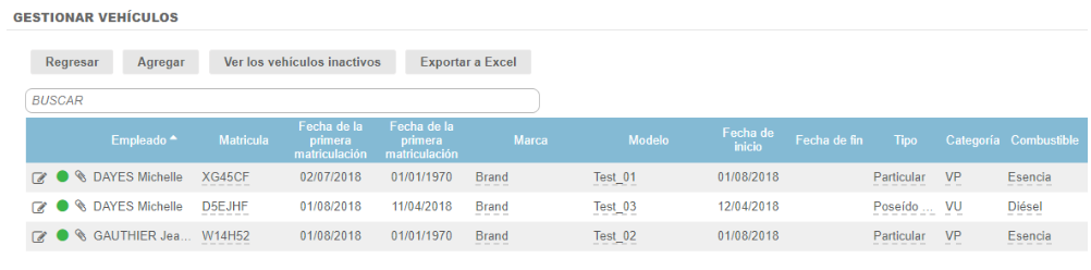 - Vehículos inactivos: no disponibles para la imputación de gastos.