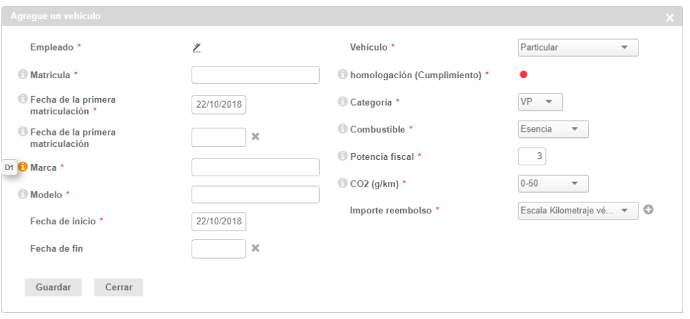 Cuando se añade un Vehículo, hay que ingresar sus características. Esto se refiere principalmente a la información disponible en el permiso de circulación.
