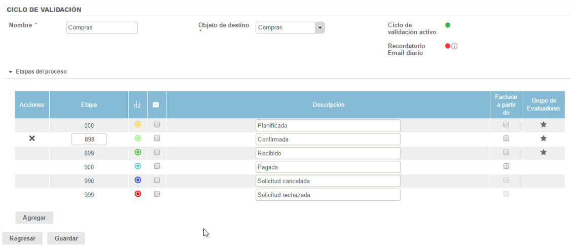 Para mas información de la configuración del ciclo de validación presione aquí.