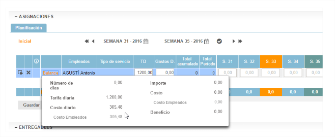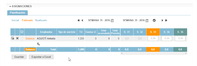 Es a partir de esta “Planificación estimada” que las hojas de actividades de los empleados se completan.