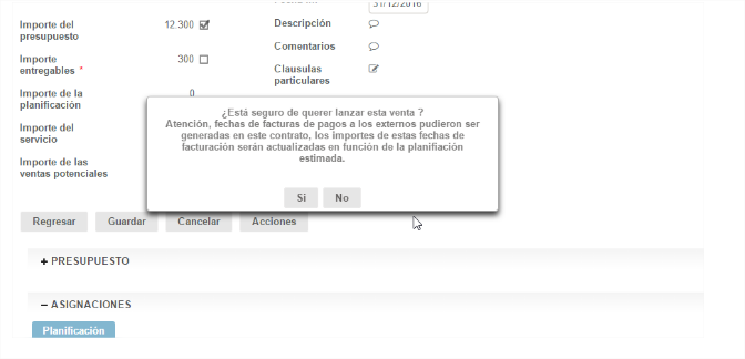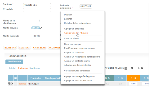 - Modificar las asignaciones iniciales: días, tarifas, servicios/entregables, fechas etc.