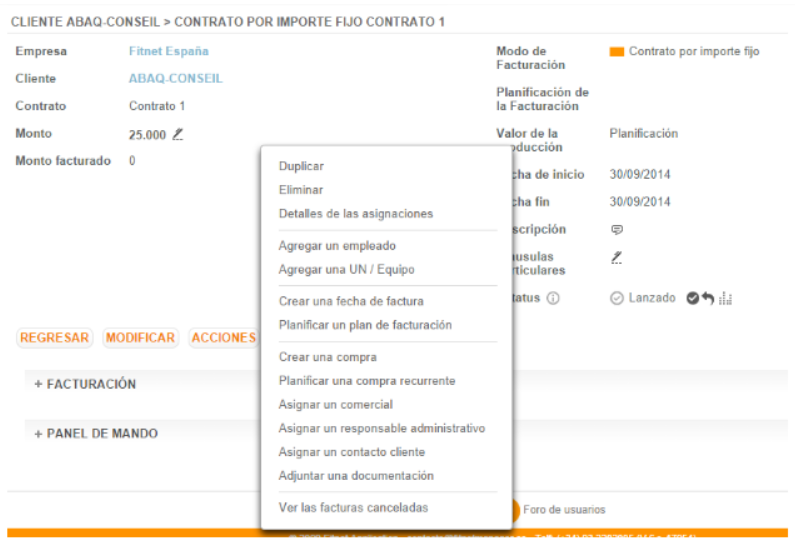 - a partir del contrato (opción Planificación de la Facturación: Contrato y Abono)