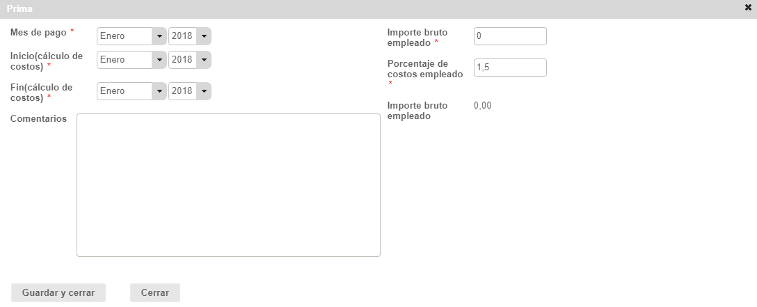 - Periodo en el que se tiene en cuenta la prima en el cálculo del costo de empleado.
