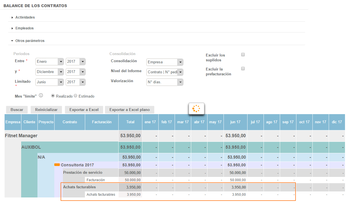 En los Informes Balance de los contratos e Indicadores claves vamos a poder diferenciar el importe facturado al cliente por el servicio prestado y por las compras refacturadas.