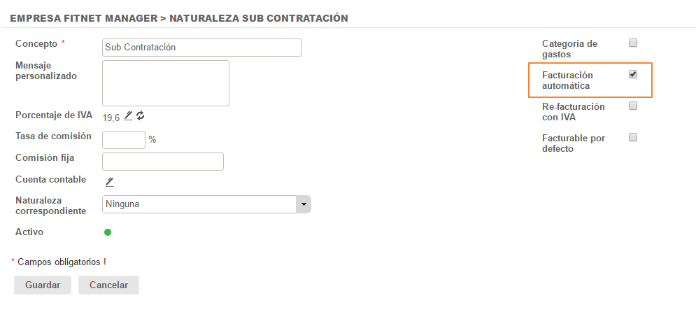 1. La naturaleza de la compra debe tener seleccionada la casilla Facturación automática. Configuración > Compras > Naturalezas de compras.
