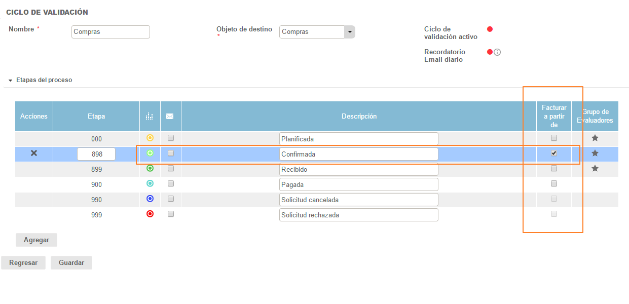 - Confirmada si no tenemos un ciclo de validación activo para las compras.