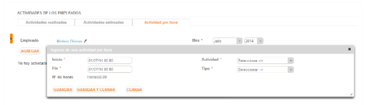 El botón “guardar y cerrar” cierra la ficha de actividades horarias.