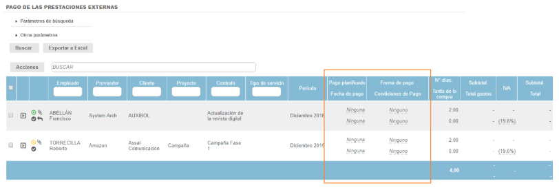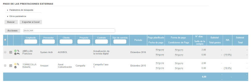 Para hacer un seguimiento del pago de los servicios externos debemos ir al modulo Compras > Pago de las prestaciones externas.