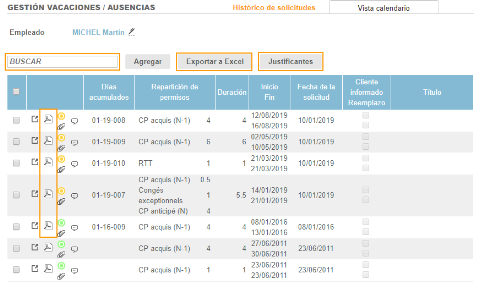 - Exportar bajo Excel el histórico de solicitudes de vacaciones a través del botón "Exportar a Excel"