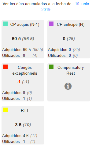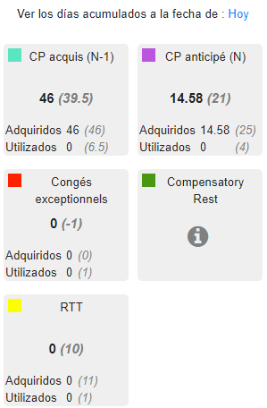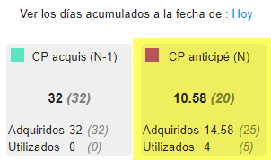 El período de vacaciones va del 1 de junio al 31 de mayo. Visualizo mi contador a la fecha del día.