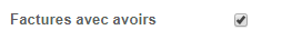 La checkbox “Factures avec avoir” permet de filtrer les factures qui ont fait l’objet d’un avoir. En cochant cette case, seules factures concernées s’affichent. Sous le numéro de la facture, entre parenthèses, apparaît le numéro de l’avoir.