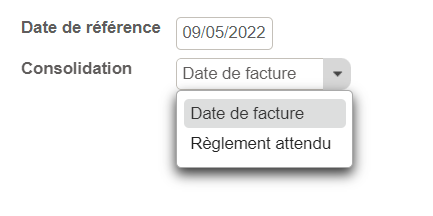 Le filtre "Consolidation" permet de choisir si la date de référence est la date de facture ou la date de règlement attendu.