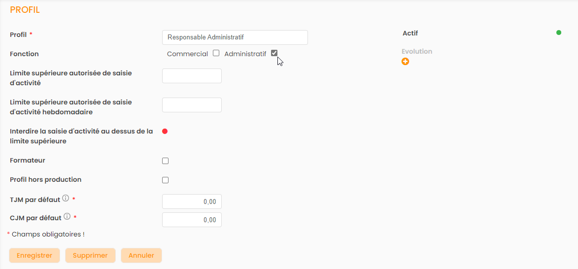 Au niveau de la configuration de la liste des profils il est possible de créer des profils administratif.