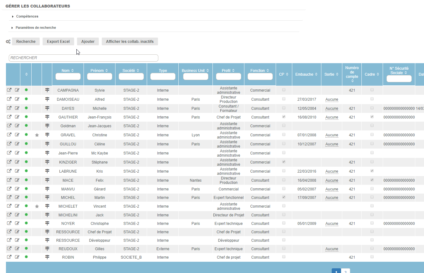 Les paramètres de recherche permettent de retrouver un collaborateur s'il est :