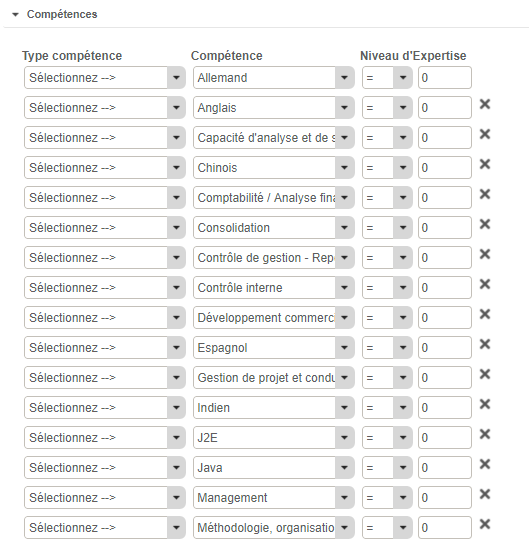 Si le paramètre "Affichage Auto des compétences dans le filtre" est actif, on peut filtrer les collaborateurs directement par compétences :