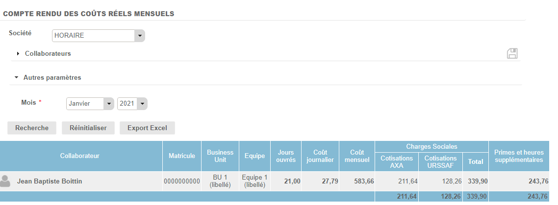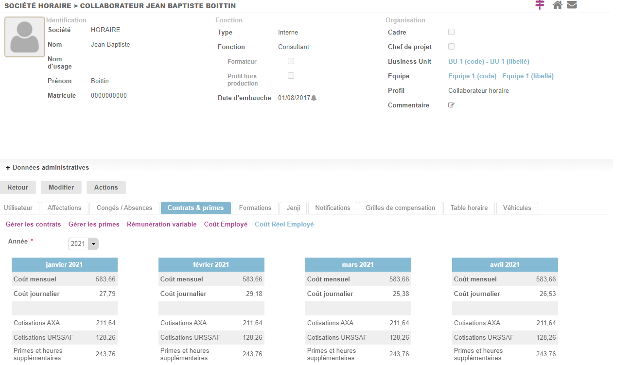 On peut avoir la vision par collaborateur directement dans l'onglet Coût Réel Employé. Pour les mois dans le futur, on reprend le montant du dernier mois renseigné.