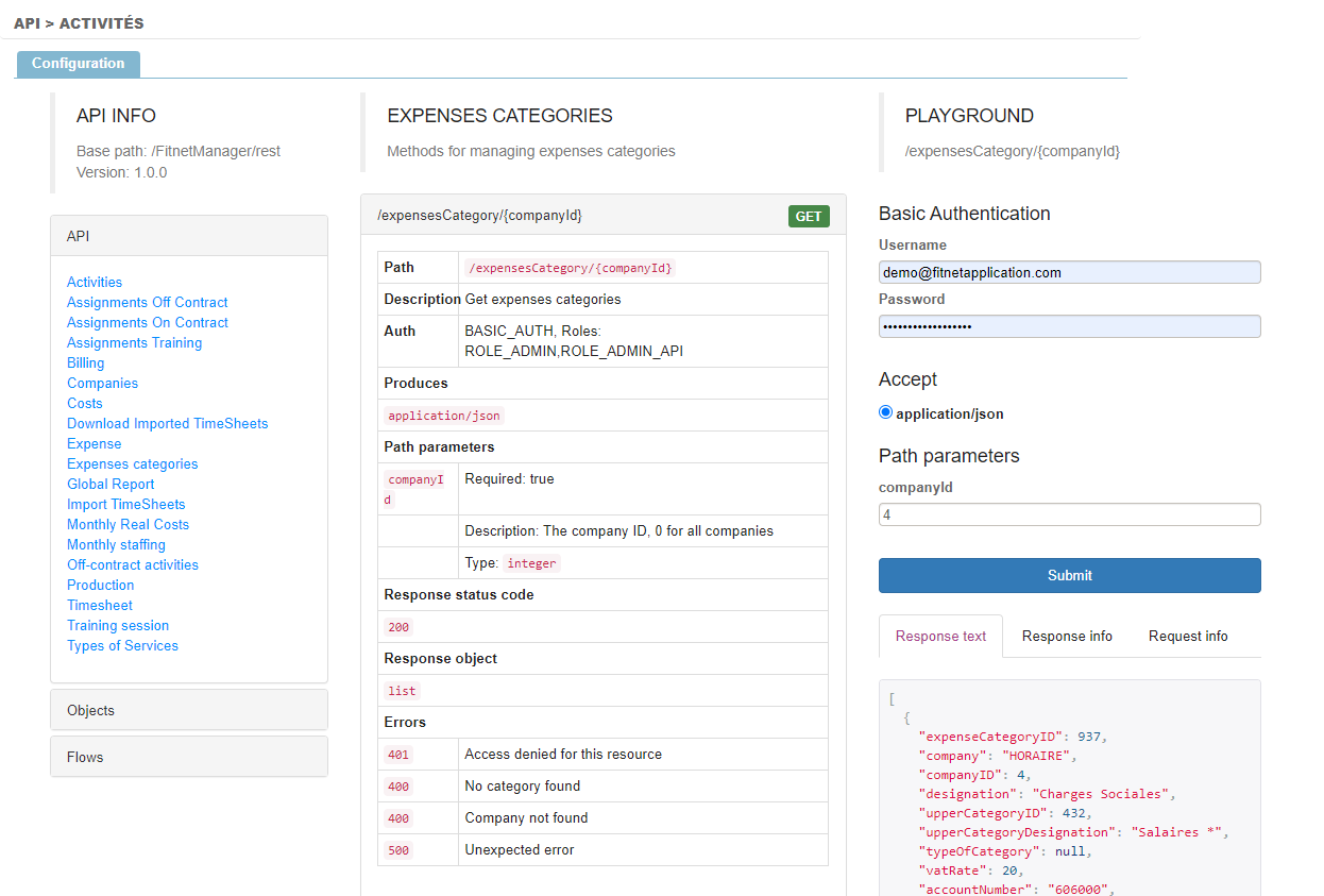- se rendre dans Configuration>API>Expenses categories