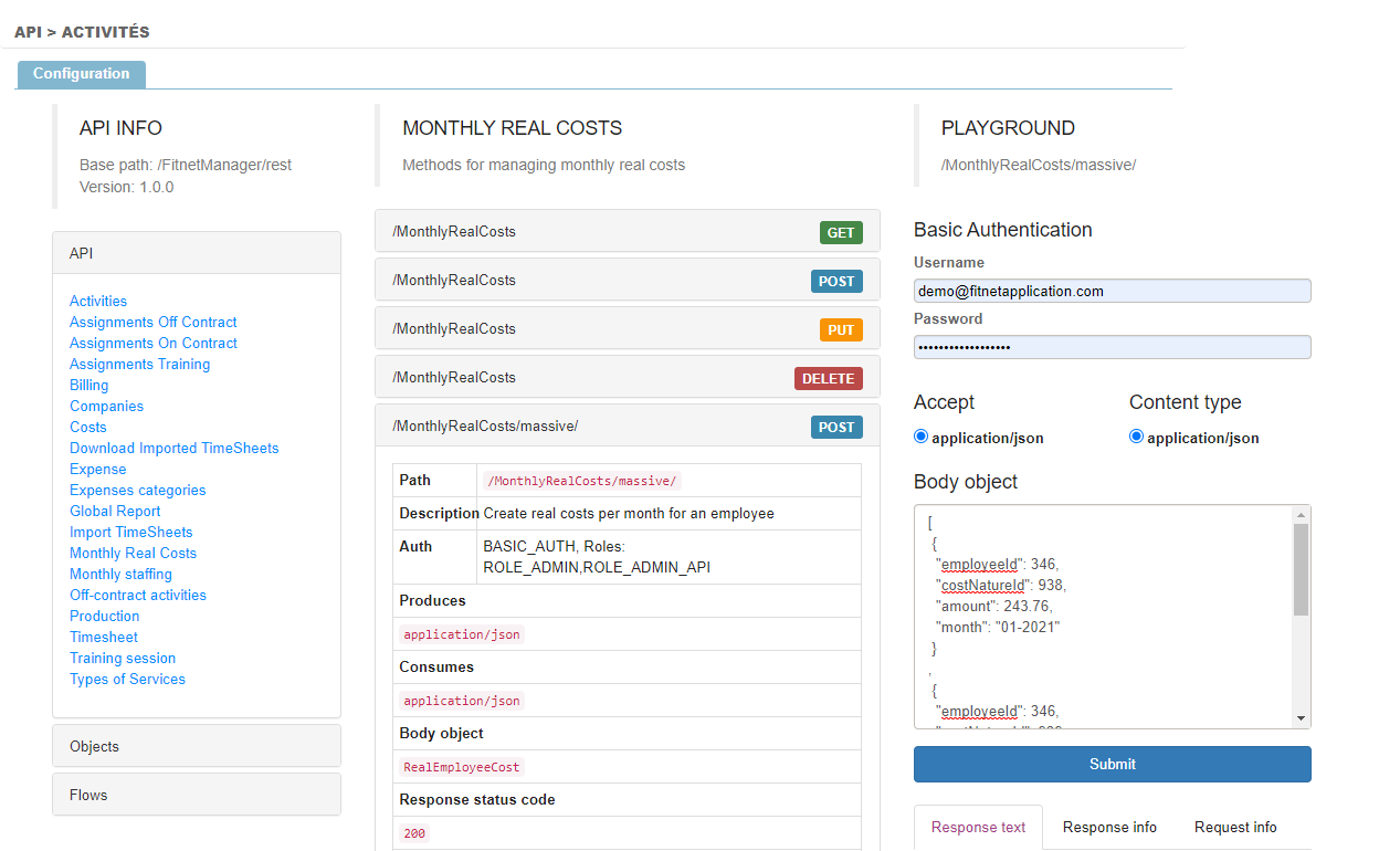 - faire un appel en masse, que ce soit depuis Fitnet ou grâce à un fichier Excel, sur l'API Montly Real Costs.