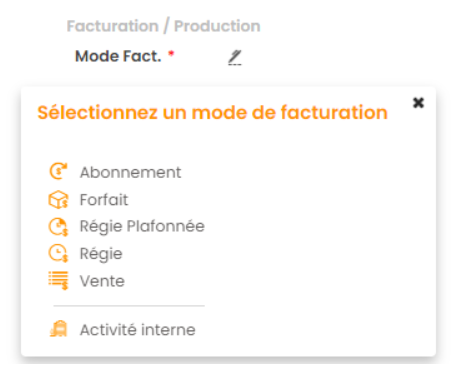 Une fois activé, à la création d’une affaire, la select liste du Mode facturation sera complétée avec le mode “Abonnement”