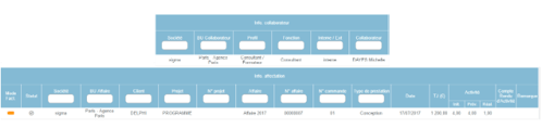 Le reporting Compte rendu d'activité reprend toutes les informations collaborateurs et affectations relatives aux affaires sur une période sélectionnée exprimée en mois.