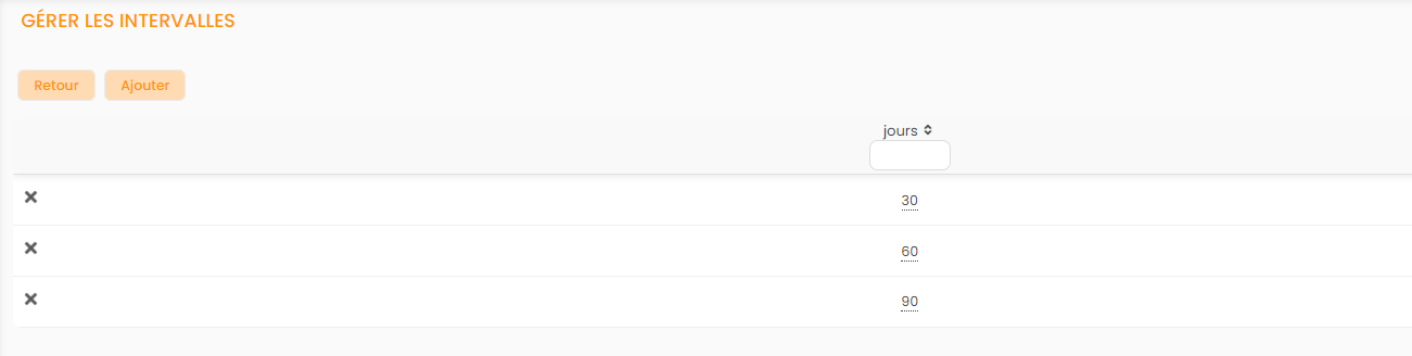 Les intervalles sont renseignées en jours.