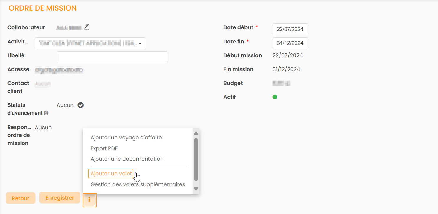 Ajouter un volet sur les ordres de missions
