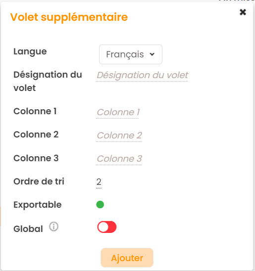 La pop-up de création d'un volet supplémentaire s'ouvre :