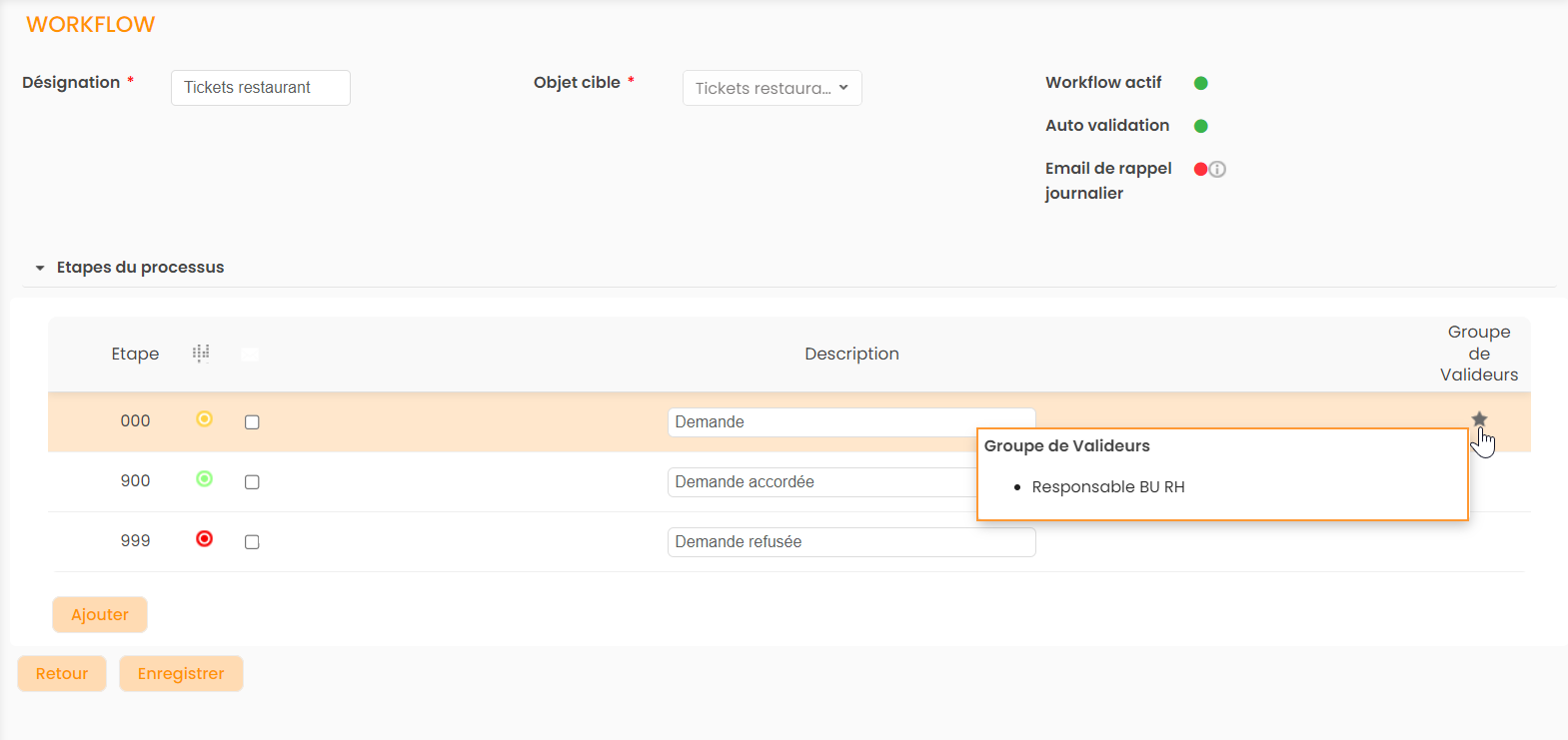 Rattacher un groupe de valideurs à une étape de workflow