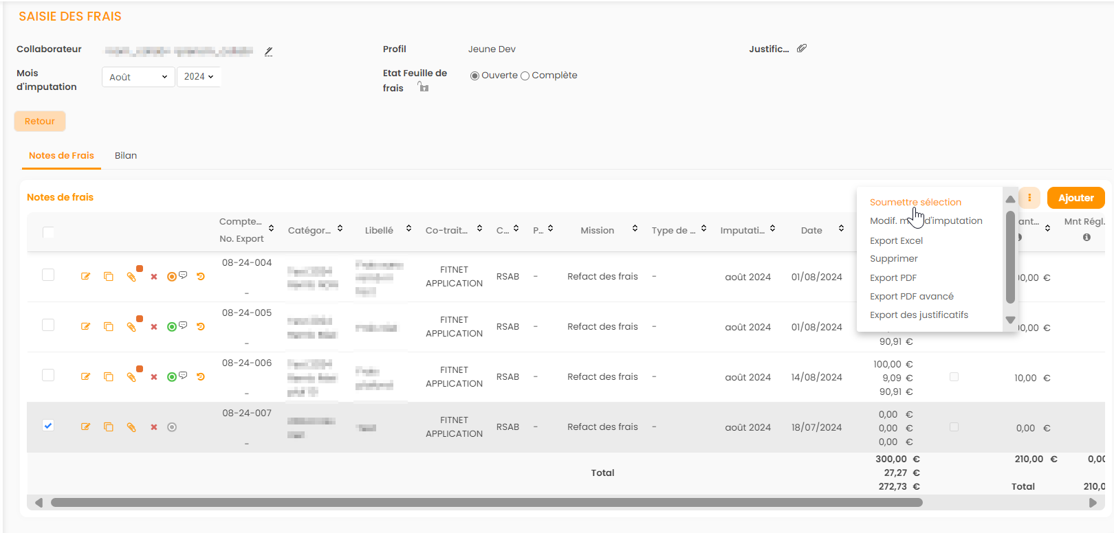 - Il n'est pas possible de cocher pour une même étape à la fois “Frais validés” et “Frais remboursés” car le fichier SEPA serait toujours vide.