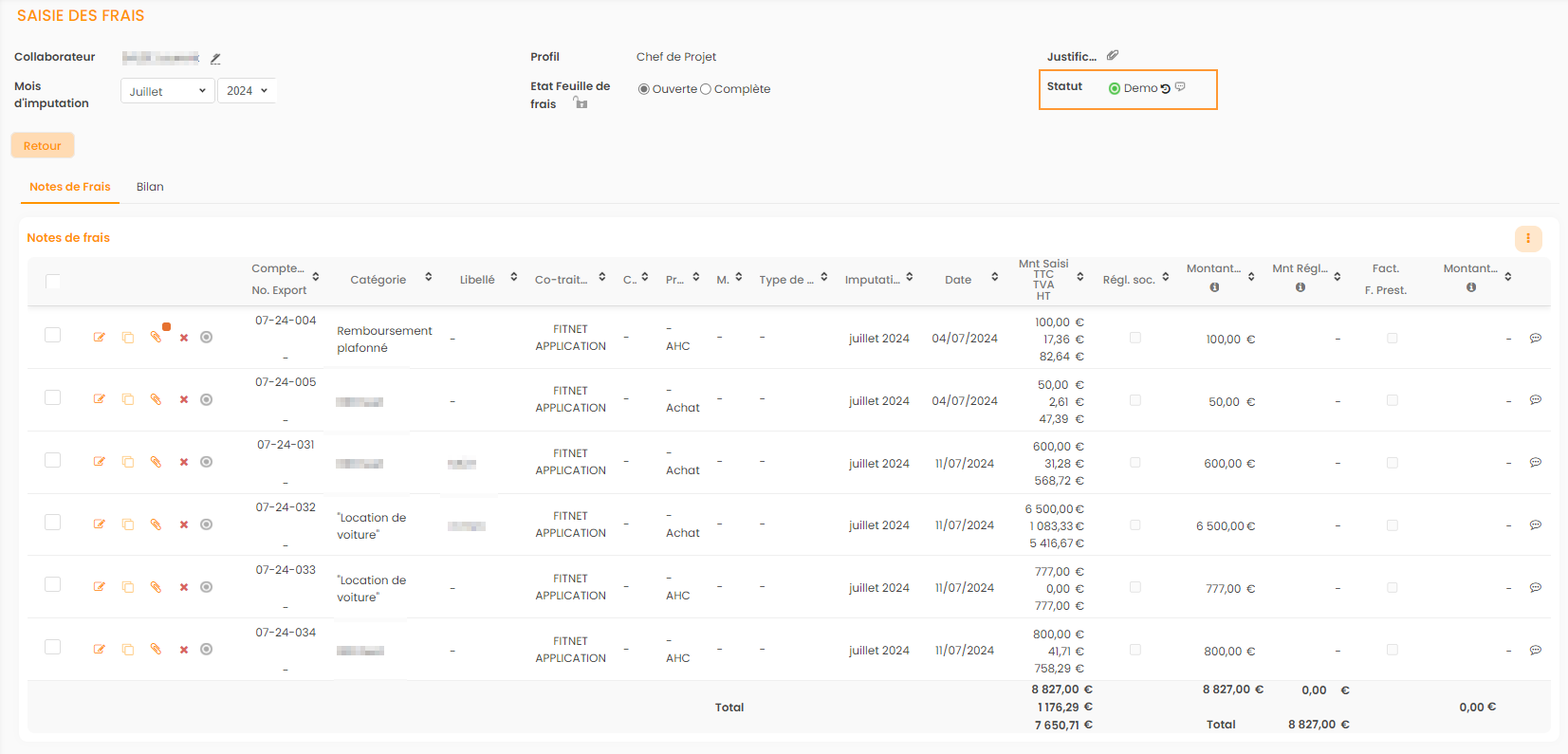 Retourner la Note de Frais