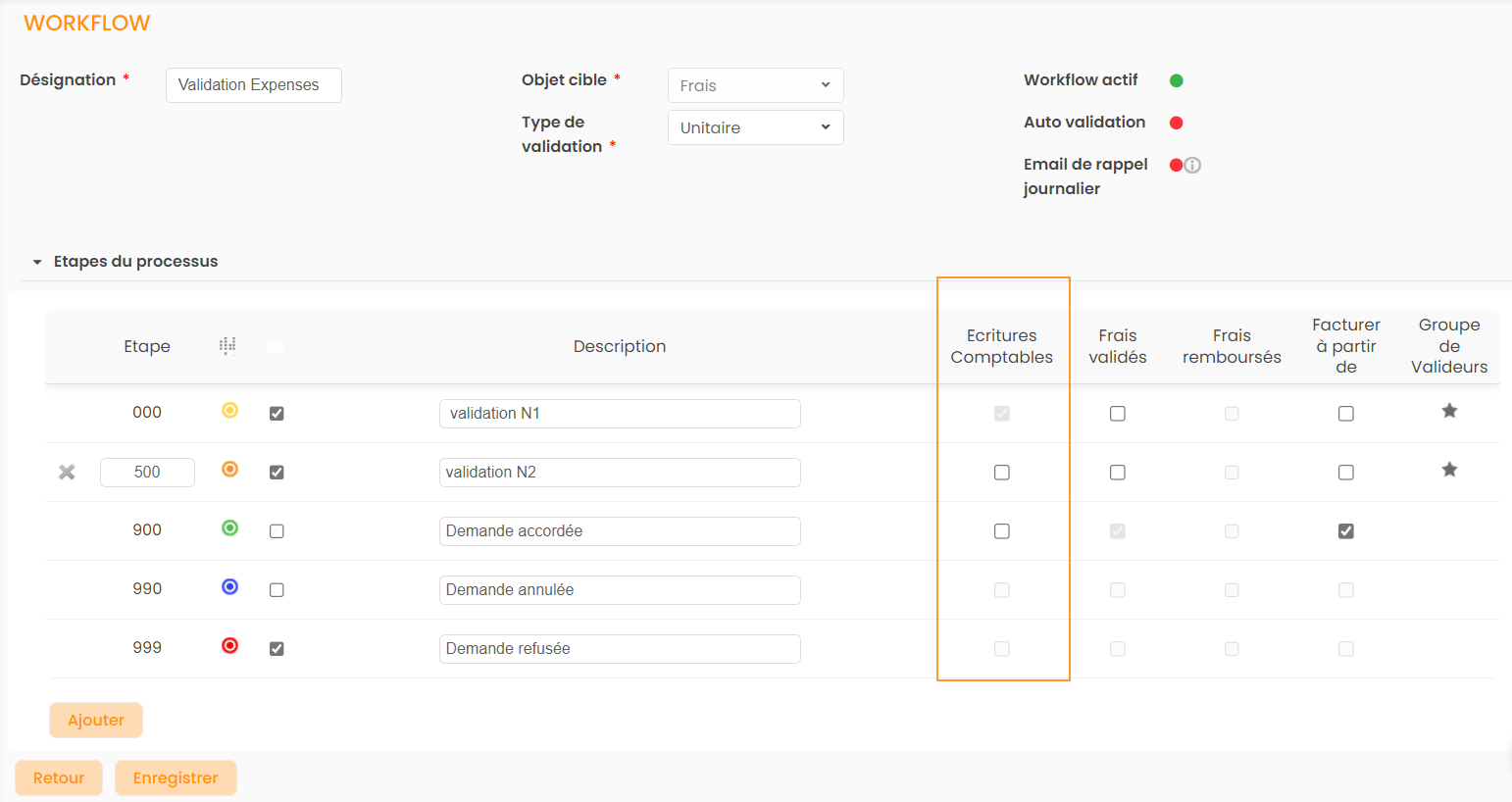 Configurer un workflow sur les Notes de Frais
